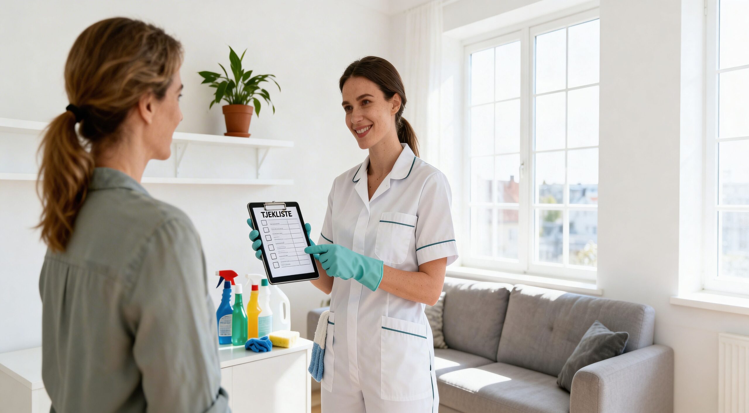 Et godt tip fra os: Lav en liste med "skal"- og "kan"-opgaver. En "skal"-opgave kunne være grundig rengøring af badeværelset hver gang. En "kan"-opgave kunne være aftørring af dørkarme en gang om måneden. Det hjælper os med at skræddersy en løsning, der passer præcist til dit budget.
